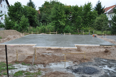 With the help of the whisker structure defines the outer edges of the buildings to be constructed by the surveyor and dannch was built for the enhanced heat protection a 8 cm thick vertical insulation, to round to a depth of 50 cm between the soil and foundation concrete for frost-and heat skirt ( Standard on Comfort HVH 2009). How to see